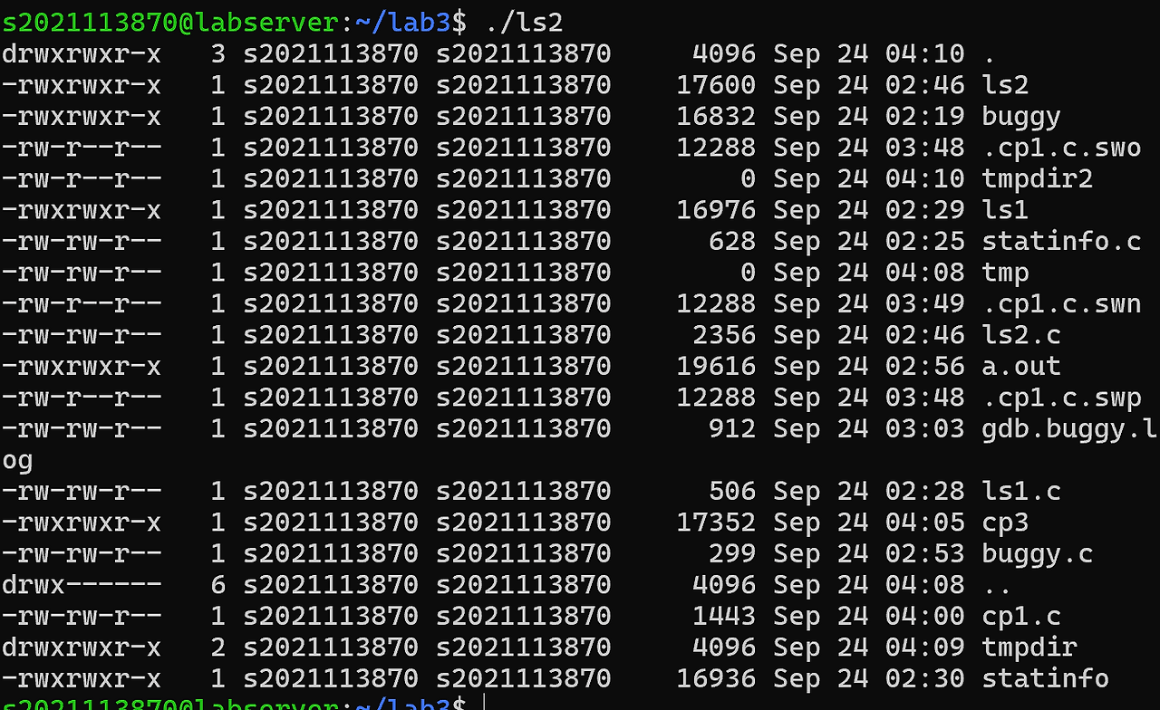 위 코드에서 사용되는 stat 구조체의 멤버는 아래와 같아서 ls -l 출력에 필요한 정보들을 뽑아 쓰는 방식이다.
